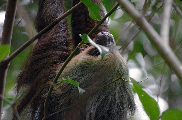 一方、フタユビナマケモノは広い行動圏を持ち、葉っぱ以外にも果物など幅広い食事をする。